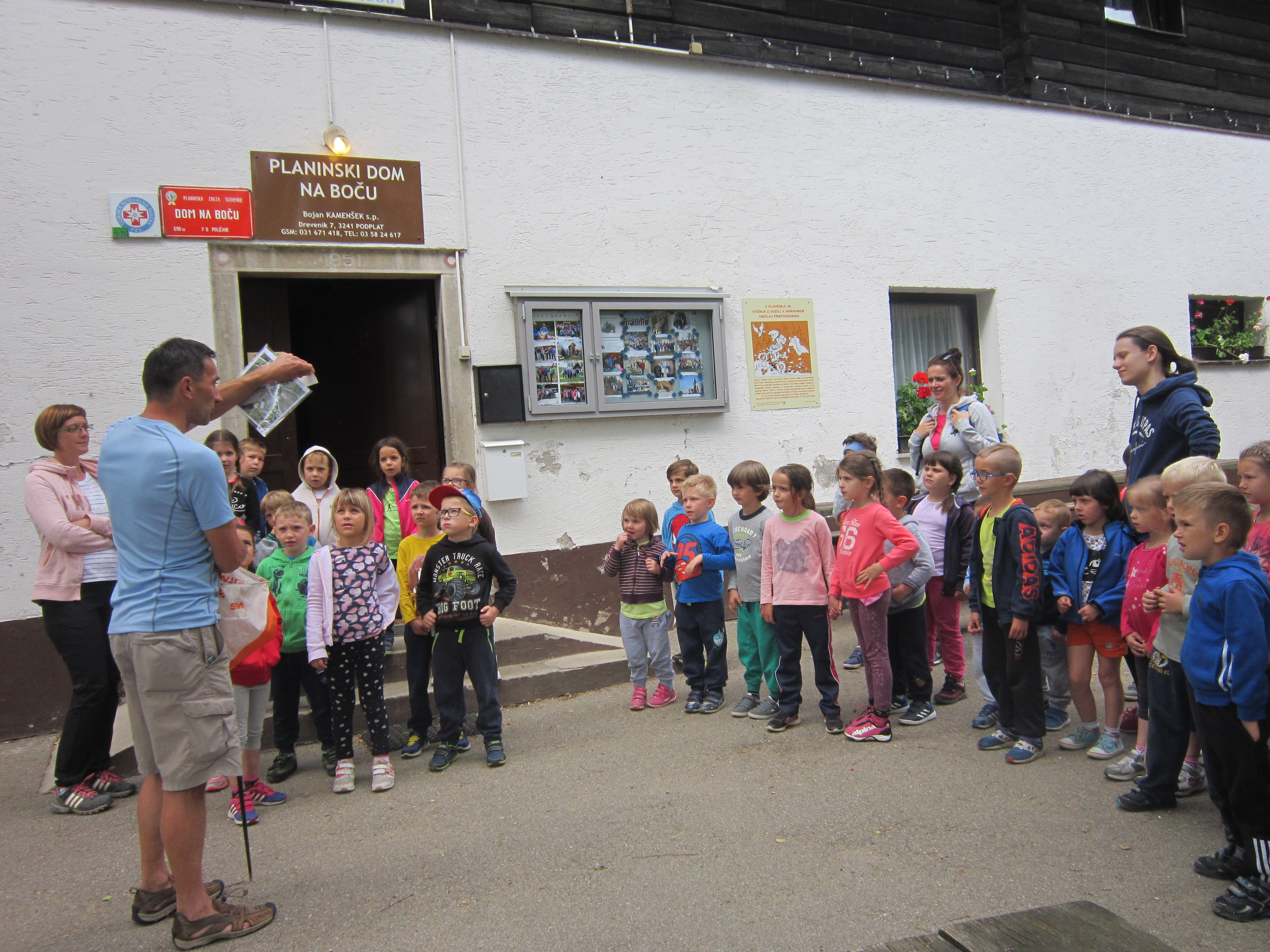 V torek je bil na sporedu vzpon na vrh Boča. Pred začetkom pohoda so poslušali razlago o uporabi planinske opreme, po poti pa pridobivali osnovna znanja iz orientacije. Najpogumnejši so se povzpeli na razgledni stolp, se razgledali na vse konce in poslušali, kaj se z vrha vidi.