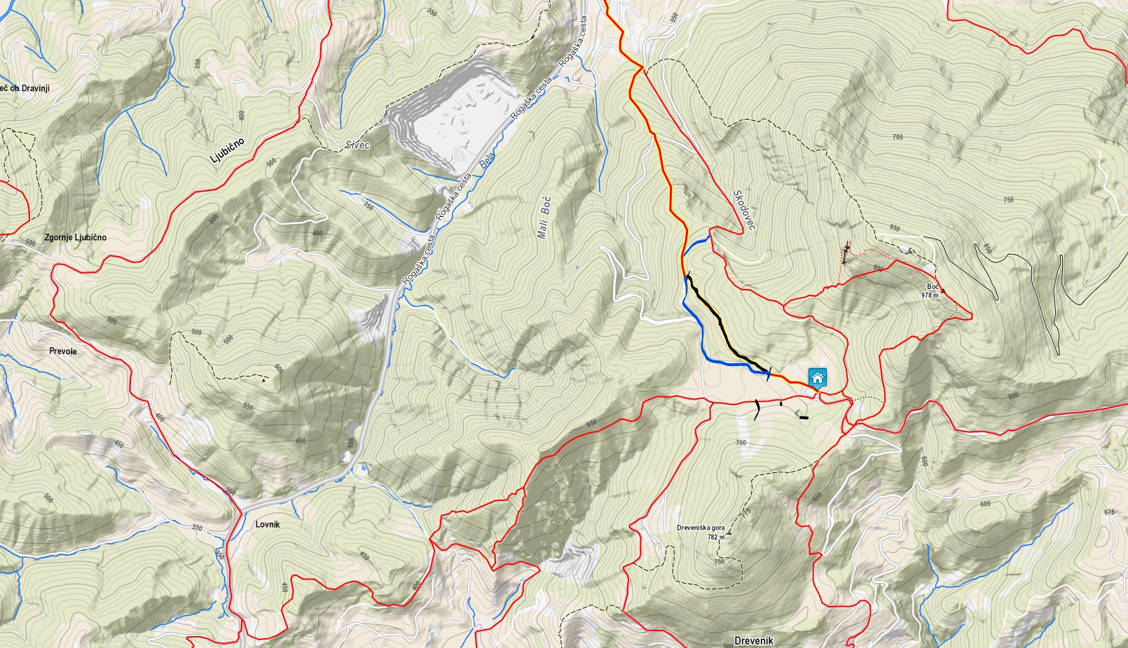 – skrenete levo in se po kolovozu priključite na “Detičkovo pot”.