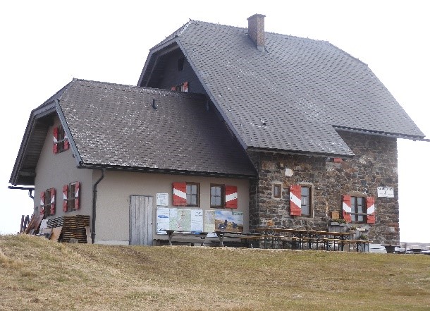 Gremo do planinske koče pod grebenom. Na greben je 30 minut vzpona in nato spust do planinske koče Wolfsberger Hutte.